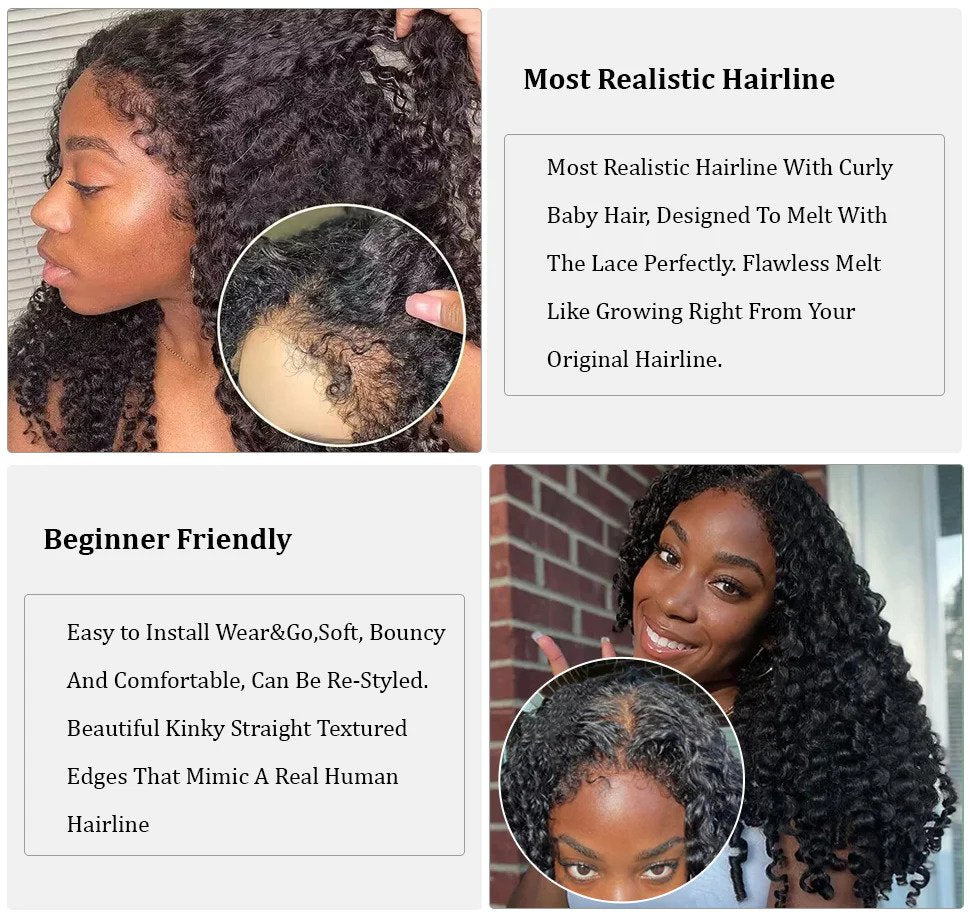 Natural Realistic Kinky Curly Hairline Wig